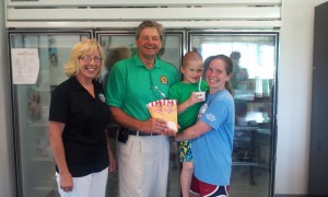 Deputy Secretary Mary Ellen Setting and Secretary Buddy Hance present 2013 passports to Megan Kilby and her son Will during the launch of the 2013 ice cream trail at Kilby Cream.
