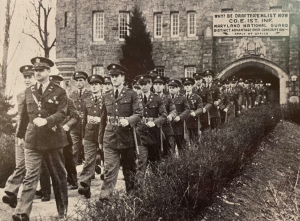 Members of Company E, 1st Maryland, march out of their Elkton Armory 1941