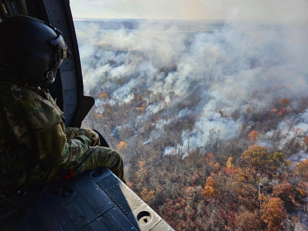 ABERDEEN, Md. — The Maryland Army National Guard provided aerial firefighting support from November 2-8, 2024, to combat brush fires at Aberdeen Proving Ground as dry, windy conditions fueled wildfires across the state.