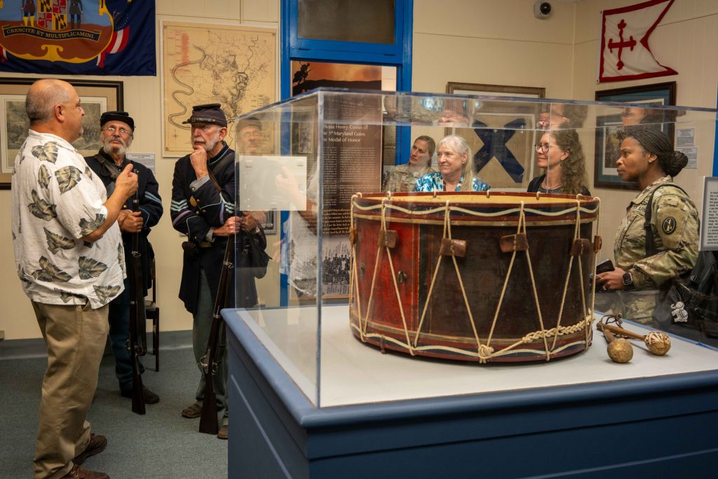 The event also marks the reopening of the Maryland Museum of Military History’s renovated Civil War, World War II, and Global War on Terror rooms. The Civil War Room features the original bass drum of Walter Russell, who enlisted at age 16 and kept cadence at the Battle of Antietam in 1862. His drum, pierced by shrapnel during the fighting in America’s bloodiest single day of battle, was donated by Chris Bloom.