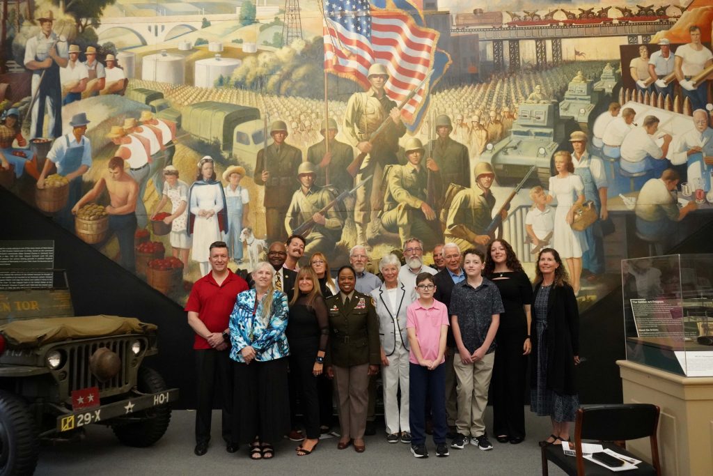 “The mural captured the way that it took a team of ordinary Americans, working at home and in the military to defend liberty across our globe,” said Birckhead. “We can be grateful to the many who teamed together to rescue these murals, restore them and give them a new place of honor here at the Fifth Regiment Armory.”